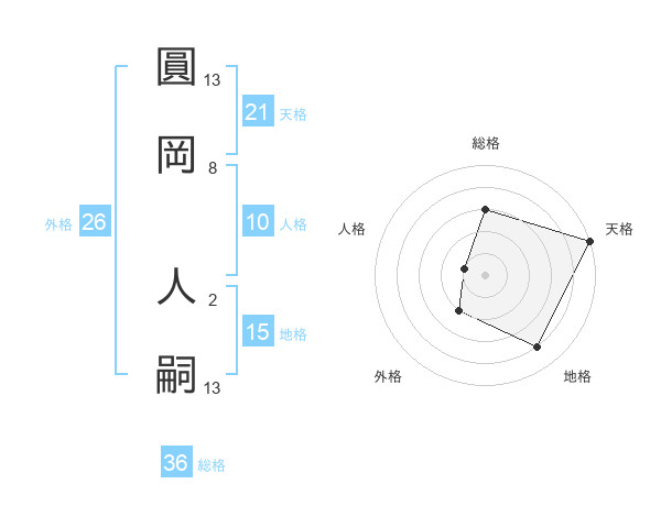 圓岡 人嗣さんを姓名の画数から五運を鑑定