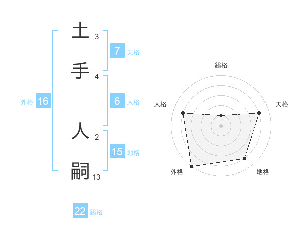 土手 人嗣さんを姓名の画数から五運を鑑定