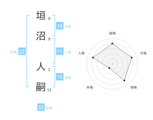 垣沼 人嗣さんの総格は33画の4点!