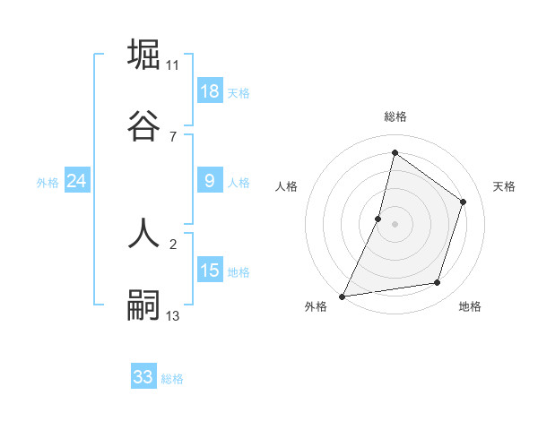 堀谷 人嗣さんの総格は33画の4点!