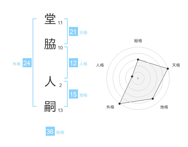 堂脇 人嗣さんの天格は21画の5点!
