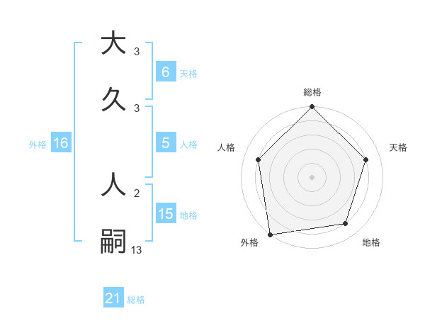 大久 人嗣さんの総格は21画の5点!