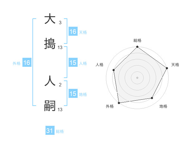 大搗 人嗣さんの総格は31画の5点!