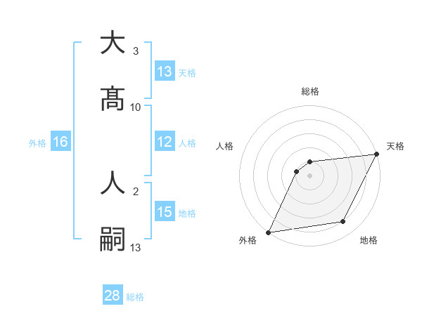 大髙 人嗣さんの天格は13画の5点!