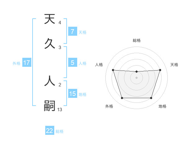 天久 人嗣さんを姓名の画数から五運を鑑定