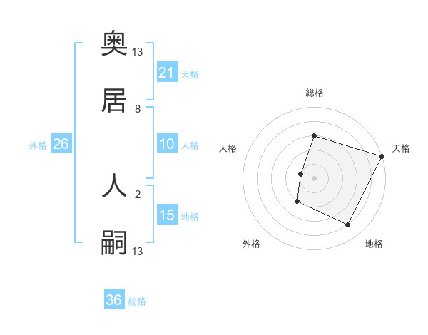 奥居 人嗣さんの天格は21画の5点!