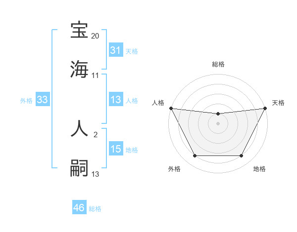 宝海 人嗣さんを姓名の画数から五運を鑑定