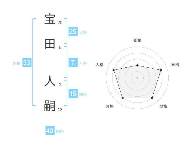 宝田 人嗣さんの総格は40画の2点!