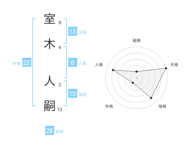 室木 人嗣さんの天格は13画の5点!