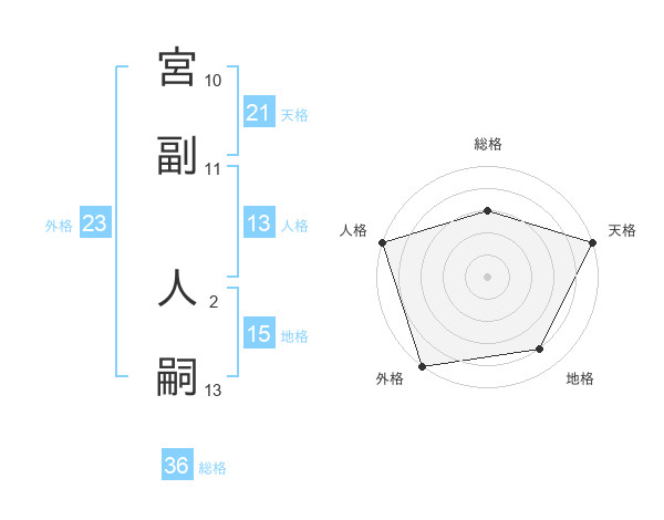 宮副 人嗣さんの天格は21画の5点!