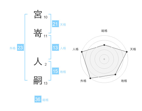 宮嵜 人嗣さんの天格は21画の5点!