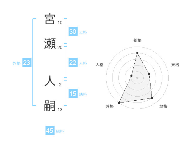 宮瀬 人嗣さんの総格は45画の4点!