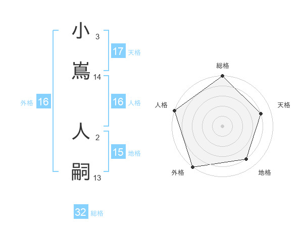 小嶌 人嗣さんの外格は16画の5点!