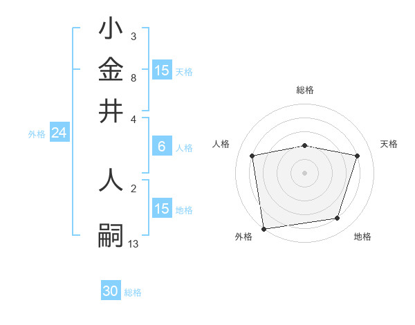 小金井 人嗣さんの総格は30画の2点!