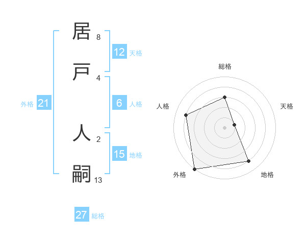 居戸 人嗣さんの総格は27画の3点!