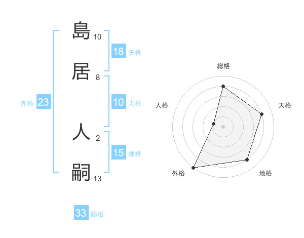 島居 人嗣さんの総格は33画の4点!