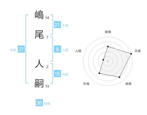 嶋尾 人嗣さんの天格は21画の5点!