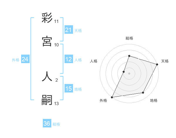 彩宮 人嗣さんの総格は36画の3点!
