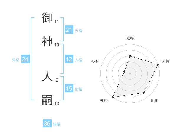 御神 人嗣さんの天格は21画の5点!