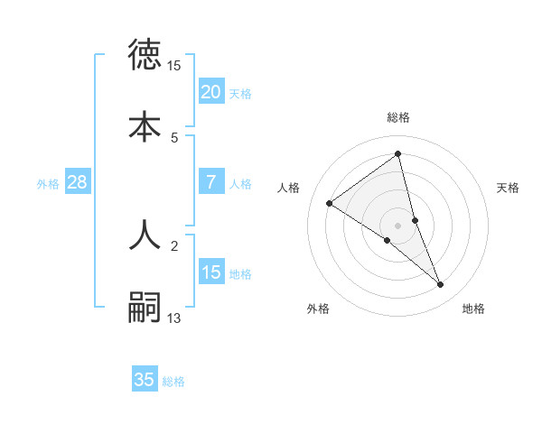 徳本 人嗣さんの総格は35画の4点!