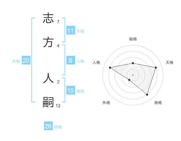 志方 人嗣さんを姓名の画数から五運を鑑定