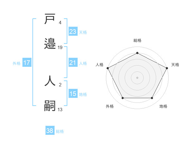 戸邉 人嗣さんの総格は38画の4点!