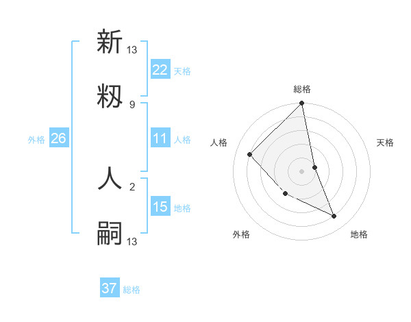新籾 人嗣さんの総格は37画の5点!