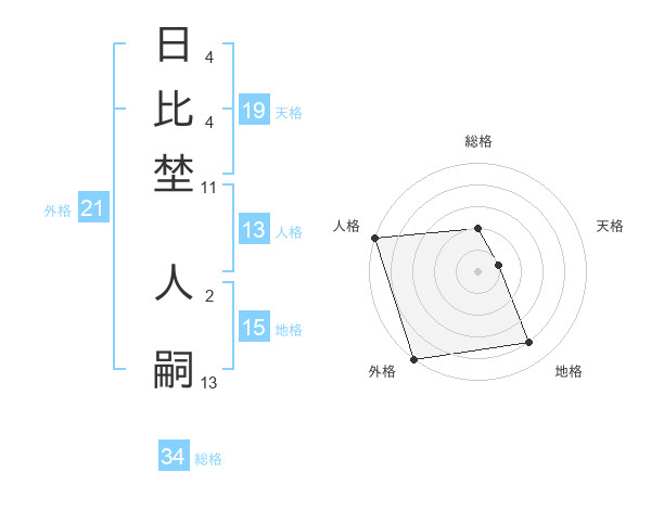 日比埜 人嗣さんを姓名の画数から五運を鑑定