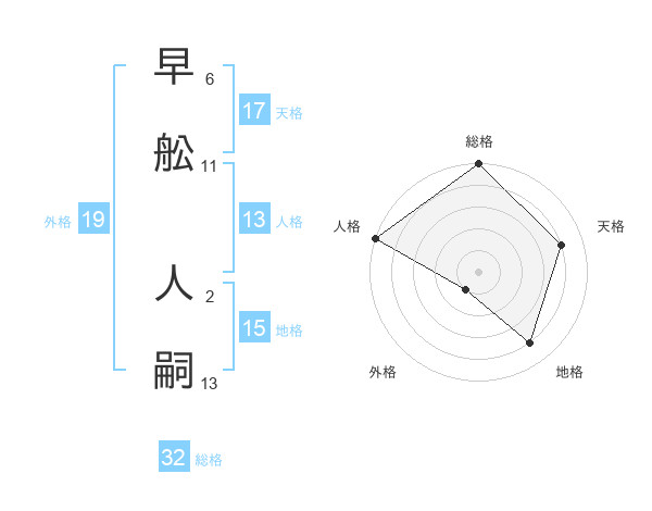 早舩 人嗣さんの総格は32画の5点!