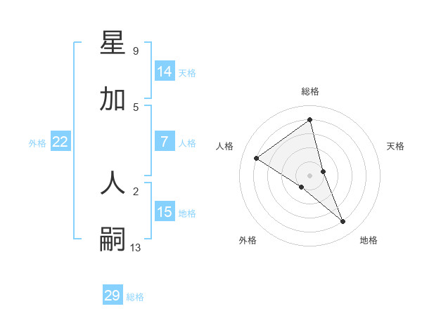 星加 人嗣さんの総格は29画の4点!