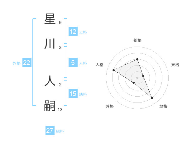 星川 人嗣さんの総格は27画の3点!