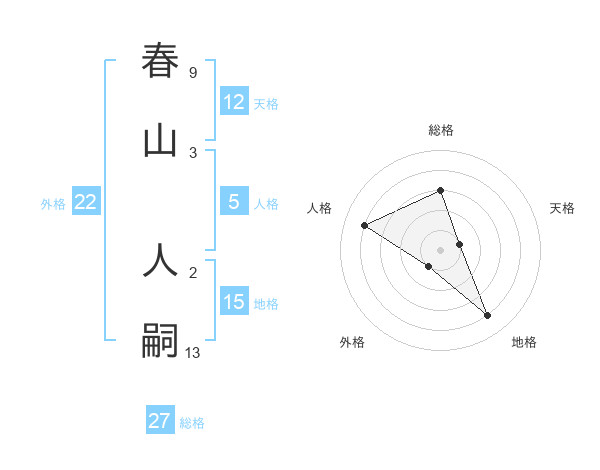 春山 人嗣さんを姓名の画数から五運を鑑定