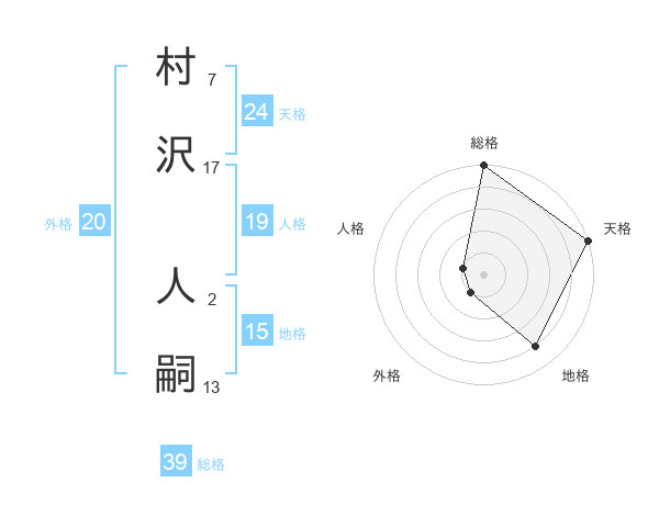 村沢 人嗣さんを姓名の画数から五運を鑑定