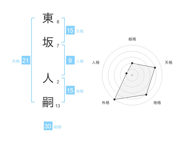 東坂 人嗣さんの天格は15画の4点!