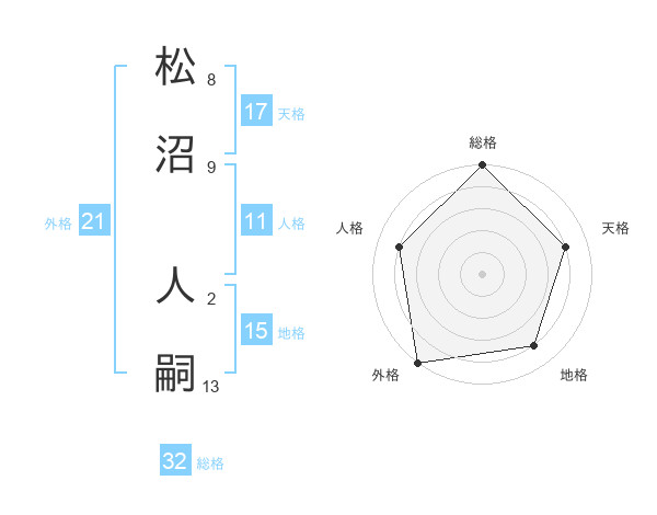 松沼 人嗣さんの総格は32画の5点!