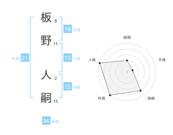 板野 人嗣さんの総格は34画の2点!