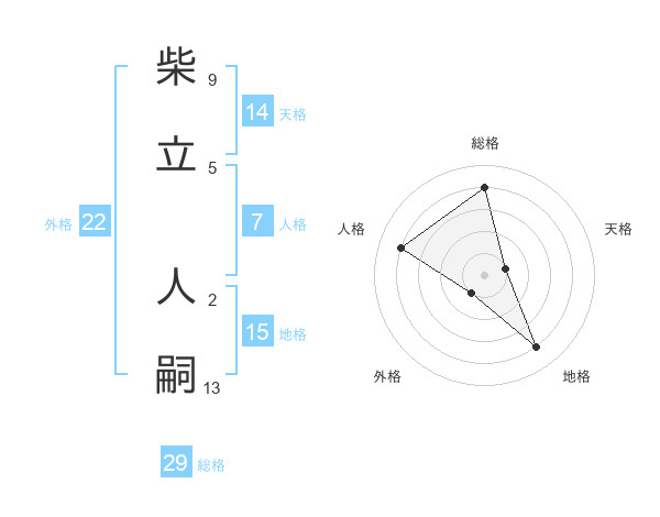 柴立 人嗣さんを姓名の画数から五運を鑑定