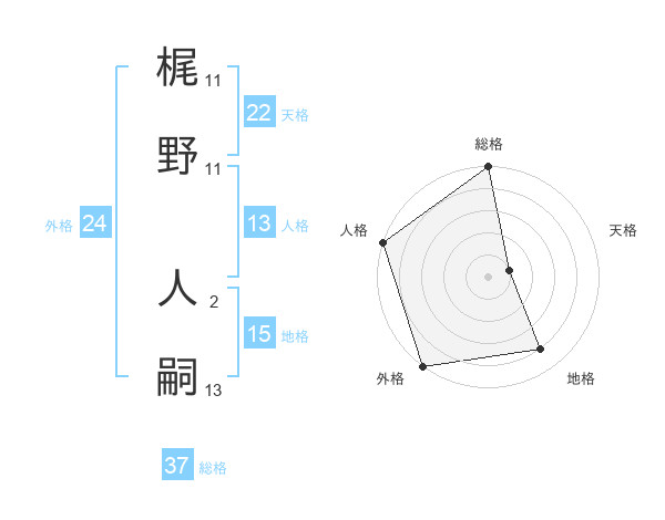 梶野 人嗣さんの総格は37画の5点!