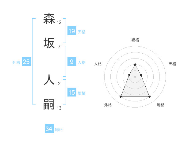 森坂 人嗣さんの総格は34画の2点!