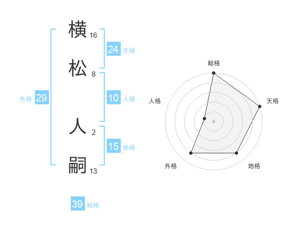 横松 人嗣さんの総格は39画の5点!