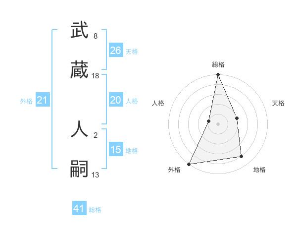 武蔵 人嗣さんの外格は21画の5点!
