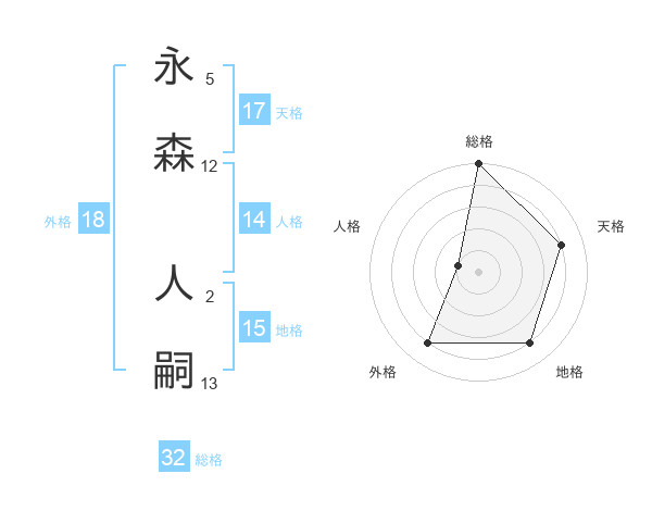 永森 人嗣さんの総格は32画の5点!