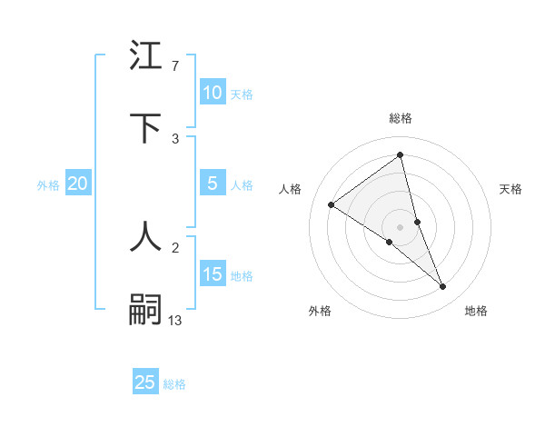 江下 人嗣さんの総格は25画の4点!