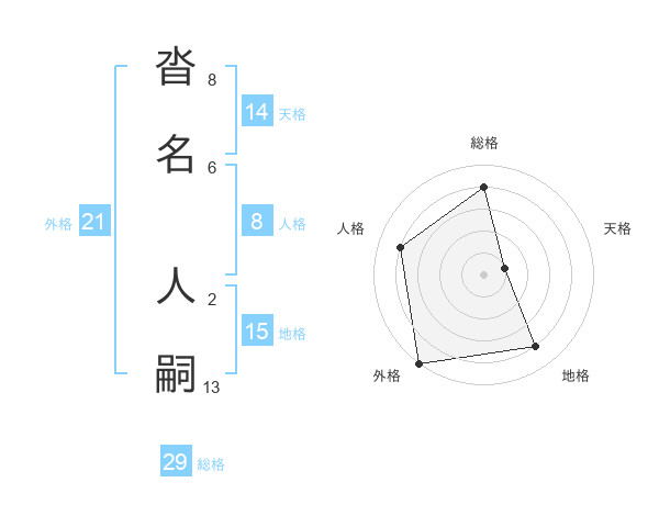沓名 人嗣さんの総格は29画の4点!