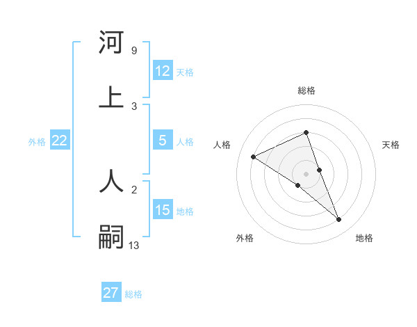 河上 人嗣さんを姓名の画数から五運を鑑定