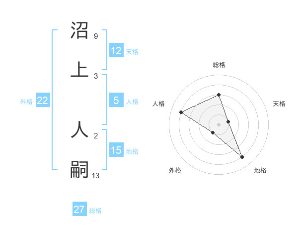 沼上 人嗣さんの天格は12画の1点!