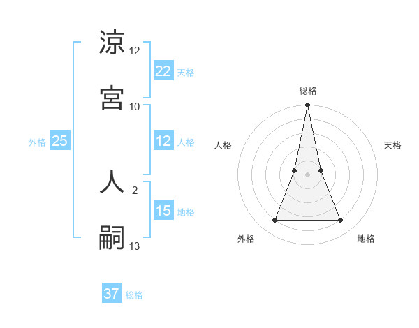 涼宮 人嗣さんの総格は37画の5点!