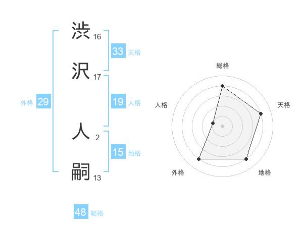 渋沢 人嗣さんを姓名の画数から五運を鑑定