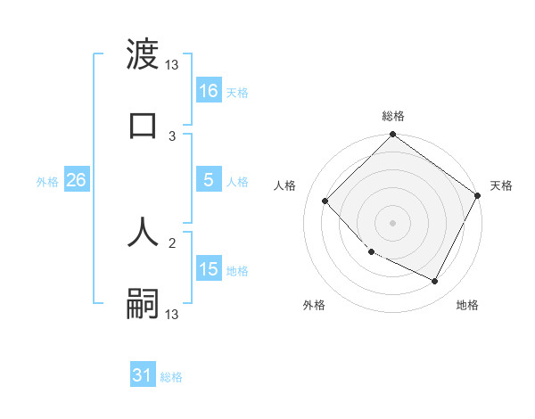 渡口 人嗣さんを姓名の画数から五運を鑑定