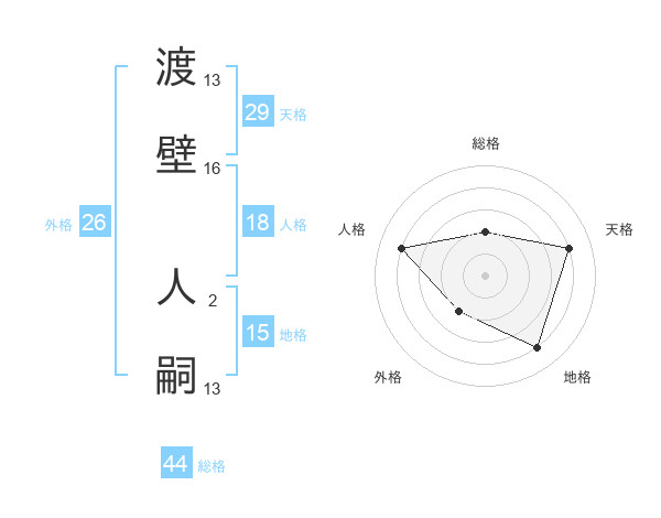渡壁 人嗣さんの総格は44画の2点!
